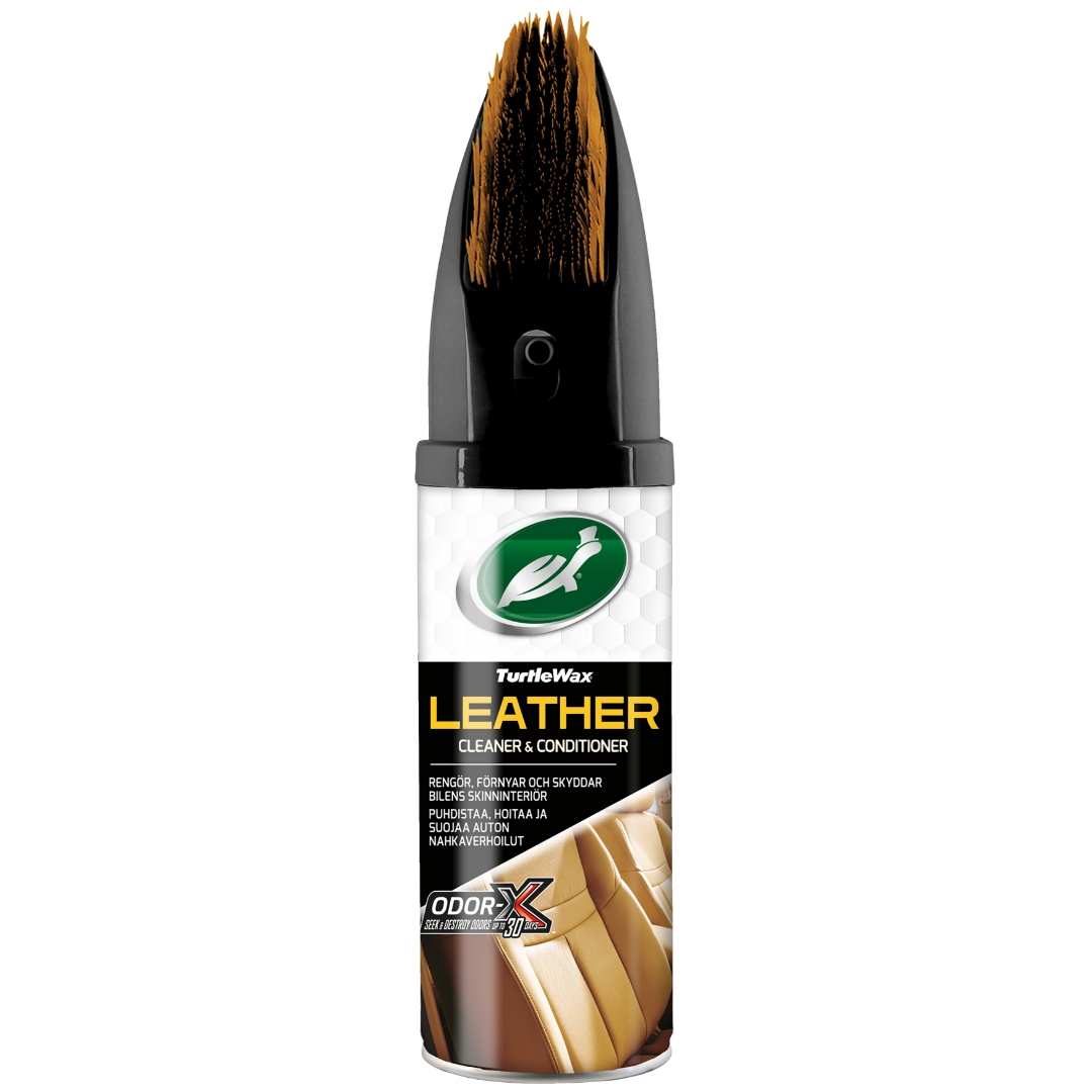 Turtle Wax Power Out Leather Cleaner & Conditioner.Rengjørende og pleiende skum som beskytter overflater mot falming, fargeendring og sprekker i skinn. Unikt skum som enkelt fjerner f. Eks. kaffeflekker og jeansmerker.