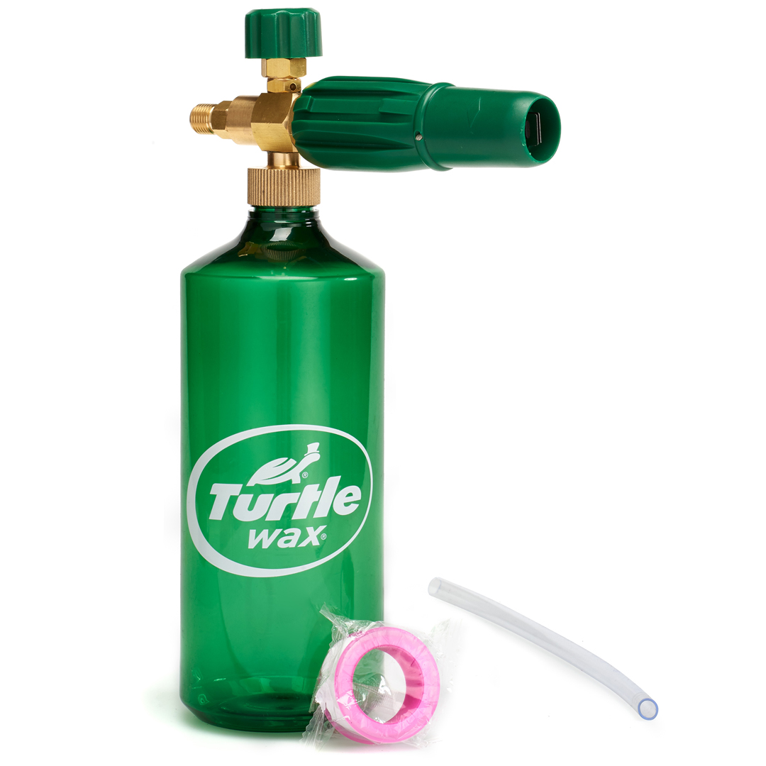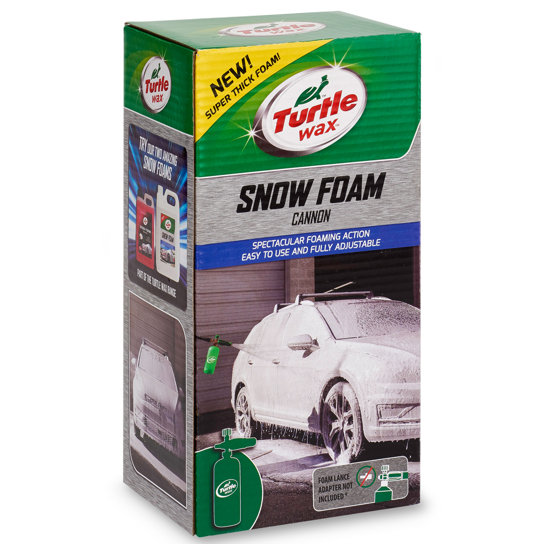 Turtle Wax skumkanonbrukes sammen med høytrykkspyler og Turtle Wax Snow Foam shampo. Munnstykket skaper et tykt skumlag som henger på overflaten og løser effektivt opp smuss. Det følger også med en rull med tetningstape til bruk sammen med adapterne.