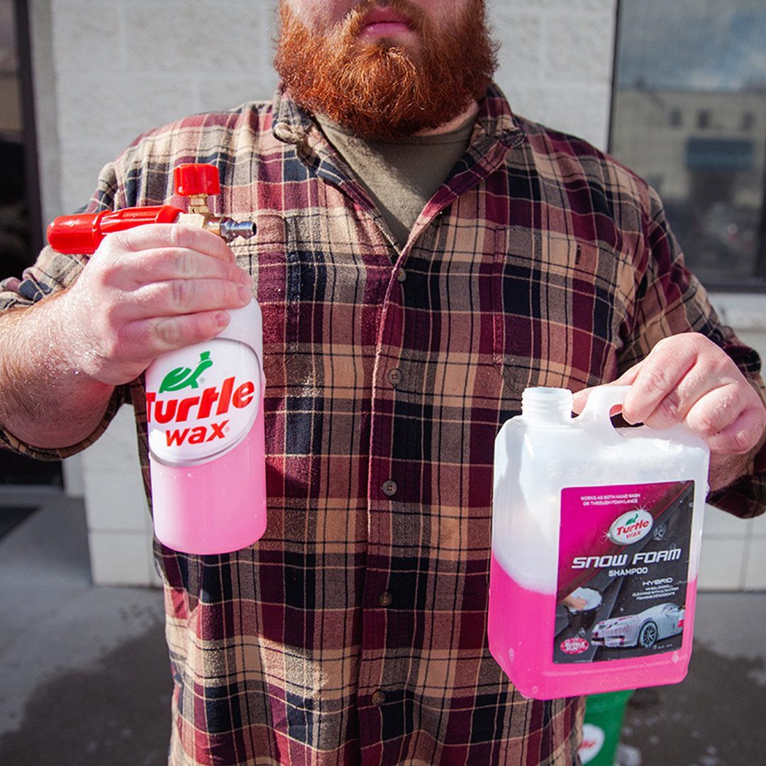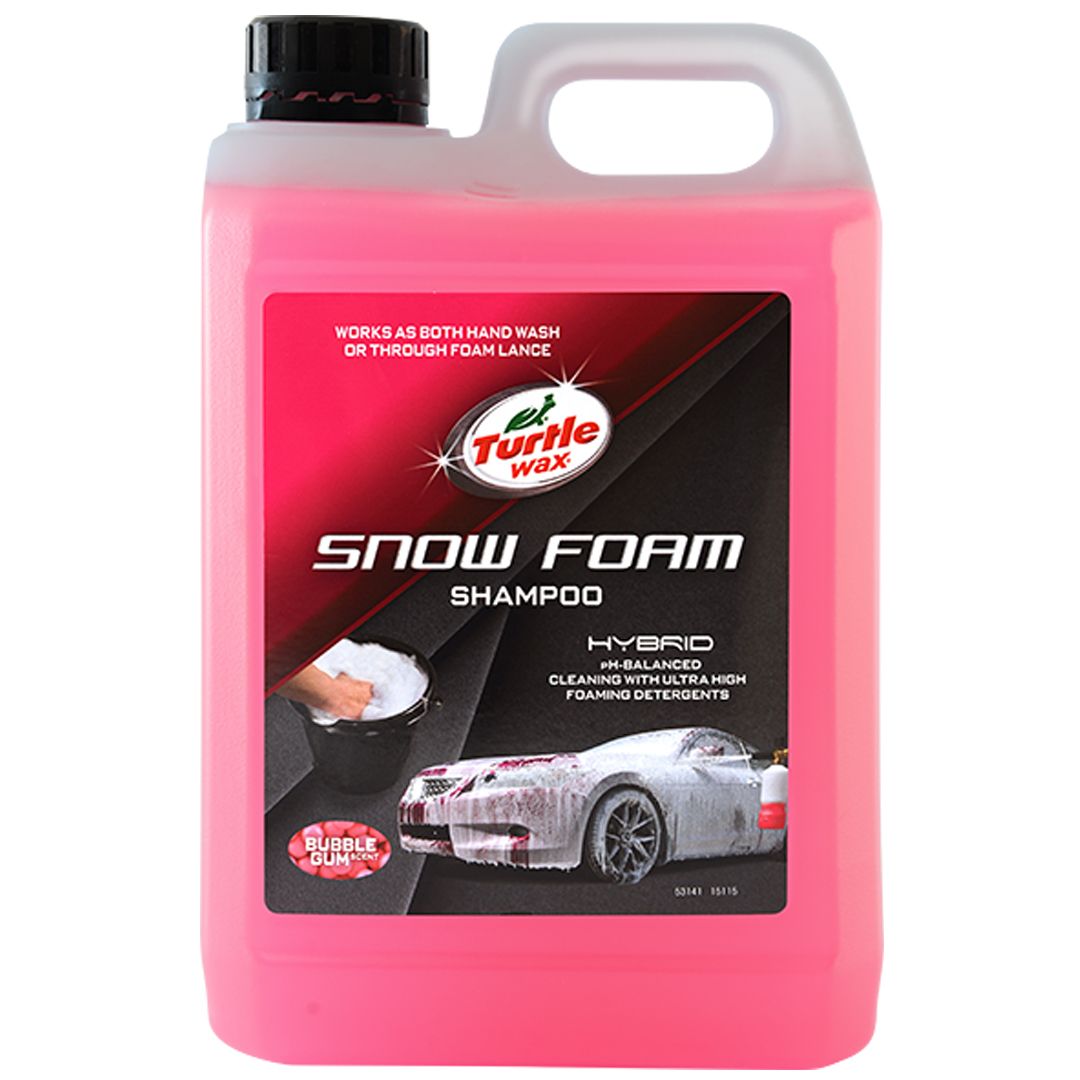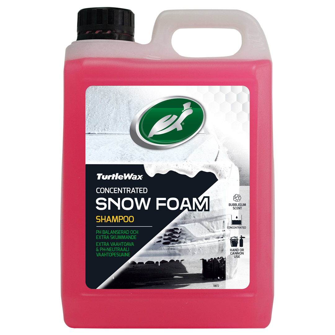 Turtle Wax Snow Foam Shampoo.Et tykt skum som fjerner trafikkfilm fra bilens overflate. Den vil også legge igjen en beskyttende barriere mot fremtidig smuss. Aktivt skum som innkapsler trafikkfilm, fett, oljer og smuss før de løftes fra overflaten. Inneholder avanserte hydrofobe polymerer for flekkfri skylling. Kan brukes på alle typer lakk, lettmetallfelger og plast. Formulert for å brukes både som tradisjonell håndvask og i skumlanse.