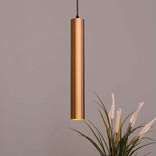 Urban messing rørpendel i et moderne design, 350 cm kabel med kontakt og bryter. Urban lampeserie har lyskilder som sitter 20mm inn i lampen for å unngå blending ved bruk. Dette gjør den svært anvendelig over blant annet kjøkkenøyer og spisebord. Pendel: 39×5,5 cm. Ledning: 350 cm. Materiale: Metall og plast. Lyskilde: Medfølger ikke. Lysregulering: Av/På bryter på ledningen. Maks effekt: 10W. Lampesokkel: GU10. Klasse: KL2. Spenning: 230V. IP klasse: IP20. CE merket: Ja. Energiklasse: A++-A. Husk å bruke medfølgende silikonverktøy for å forenkle innsetting/bytting av lyskilder.