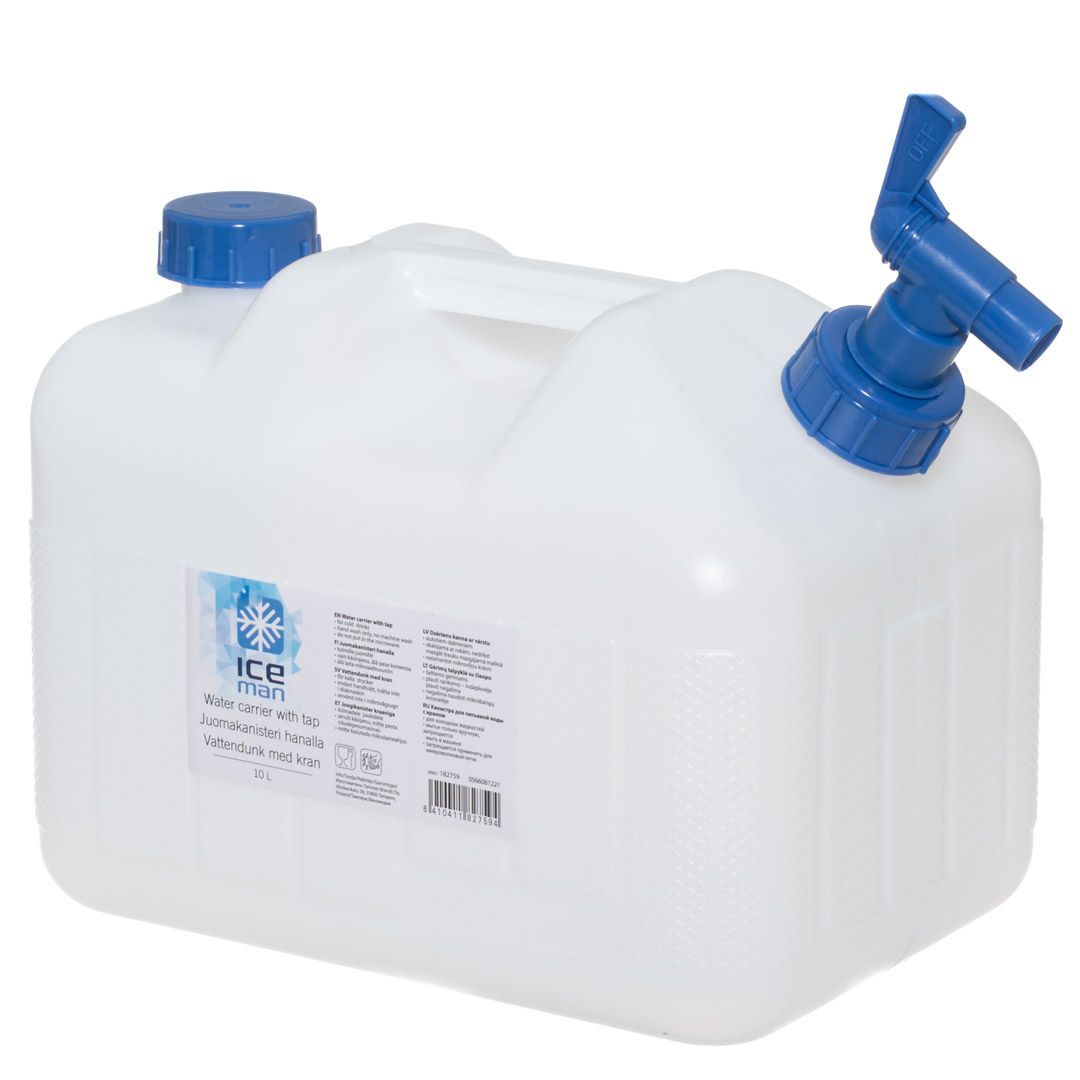 10 liter vannkanne med kran for drikke/vann transport og servering. Høy kvalitet, matsikker og slitesterk HDPE-plast.