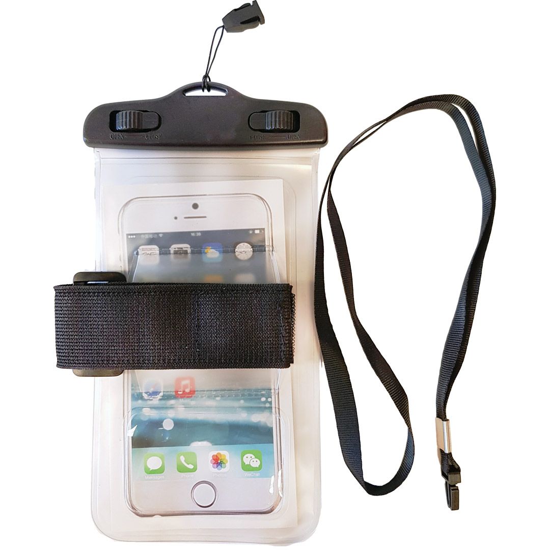 Vanntett lomme i pvc som beskytter mobiltelefonen og andre verdifulle artikler mot vannskader. Leveres med håndleddsrem og skulderrem. Størrelse: 180x105mm
