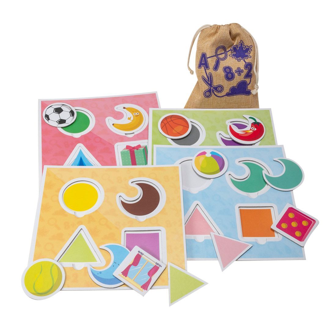 Inneholder: 4 spillebrett, 16 formede plater, 1 pose og regler