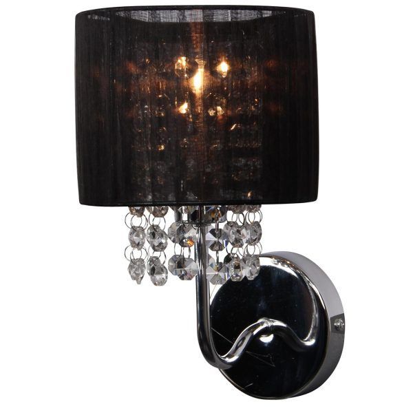 Vicenza vegglampe med organza skjerm og krystall prismer. Denne lampen blir solgt uten lyspærer så du selv kan velge etter behov. For mest mulig spill i skjerm og prismer anbefaler vi en klar lyspære. Skjermen er inkludert.