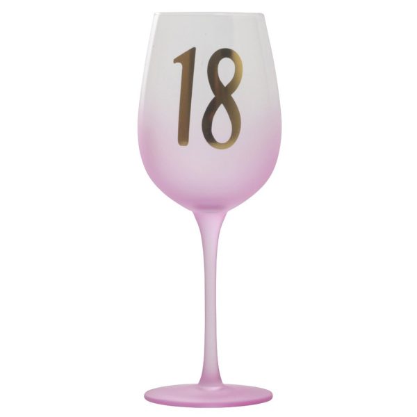 Rosa vinglass med trykk, perfekt til 18 års dagen.