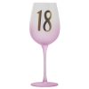 Rosa vinglass med trykk, perfekt til 18 års dagen.