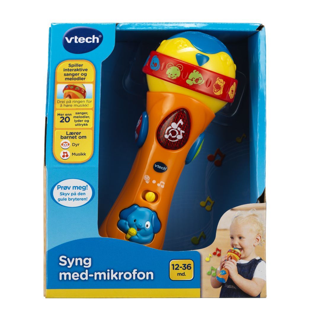 Vtech Baby Mikrofon er et spennende musikalsk leketøy for de minste. Mikrofonen spiller over 20 sanger, melodier og lyder, noe som gir barnet en interaktiv opplevelse med musikk og sang. Perfekt for små stjerneskudd som ønsker å utforske lyder og rytmer.
