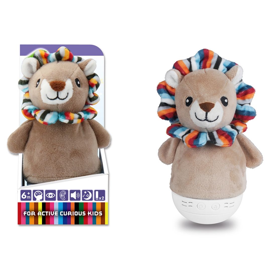 Myk nattlampe formet som en løve som avgir beroligende lys og lyd for å skape trygge omgivelser ved leggetid.