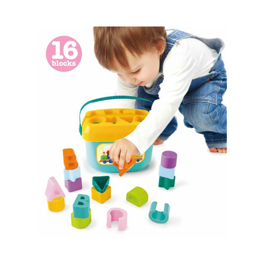 - Inkluderer 16 klosser i forskjellige former og bokstaver.