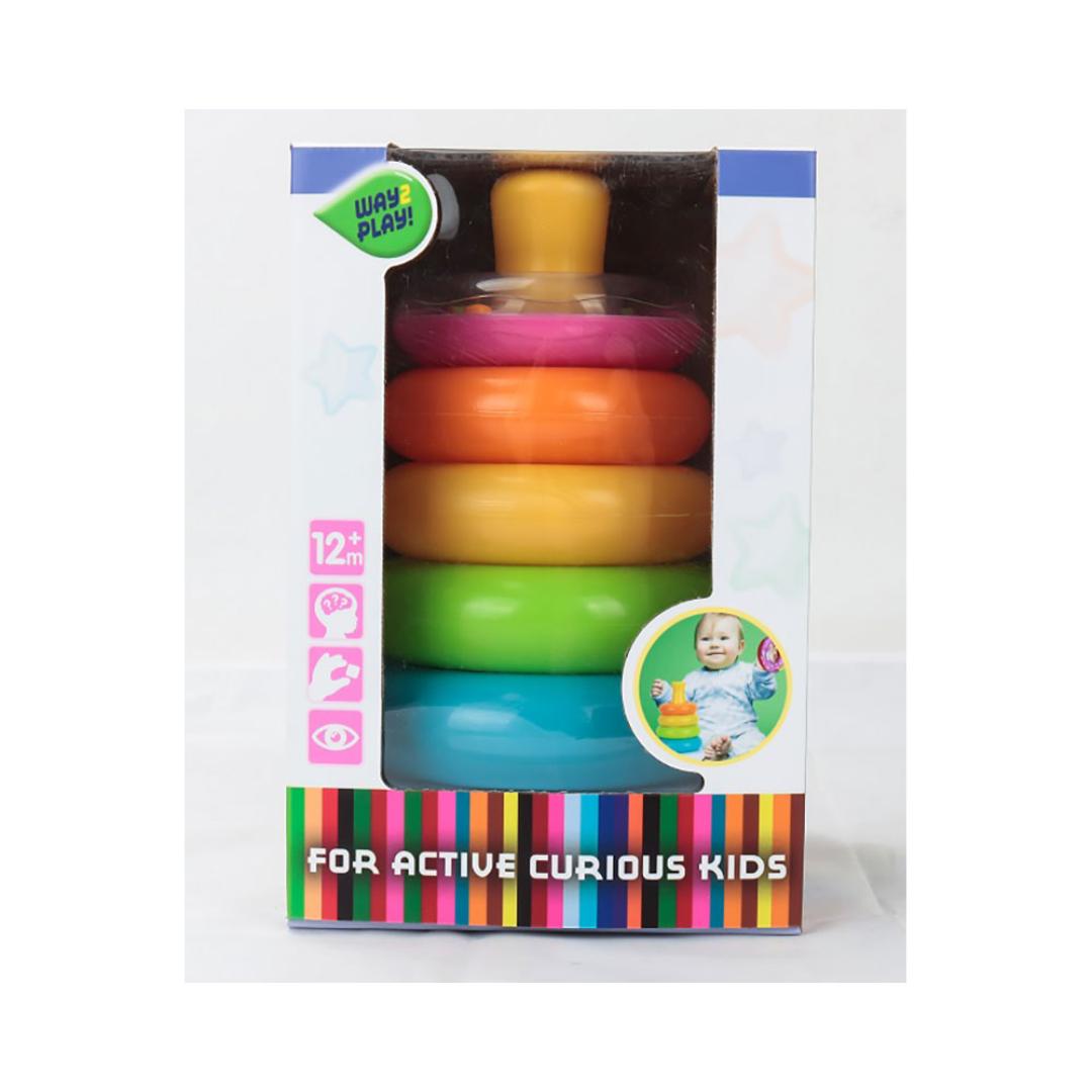 Fargerikt stabletårn fra Way2Play som stimulerer barnets koordinasjon og byggeglede. De stabile ringene er enkle å gripe for små hender og kan stables i høyden for lek og læring.