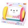 To-sidig aktivitetsspeil med speil, taktile perler og hjul foran – og spinner, dyr og roterende elementer bak. Perfekt for sanselek og tidlig finmotorikk.