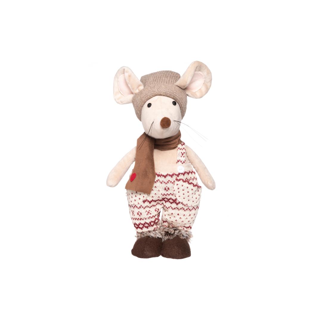 Dekorativ julemus i brune nyanser. En hyggelig figur som gir varm julestemning på bord eller hylle.