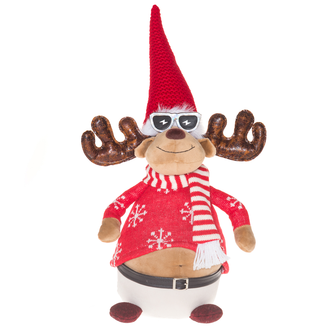Reinsdyr med solbriller, en morsom dekorasjon til hus eller kontor. Høyde: 53 cm.