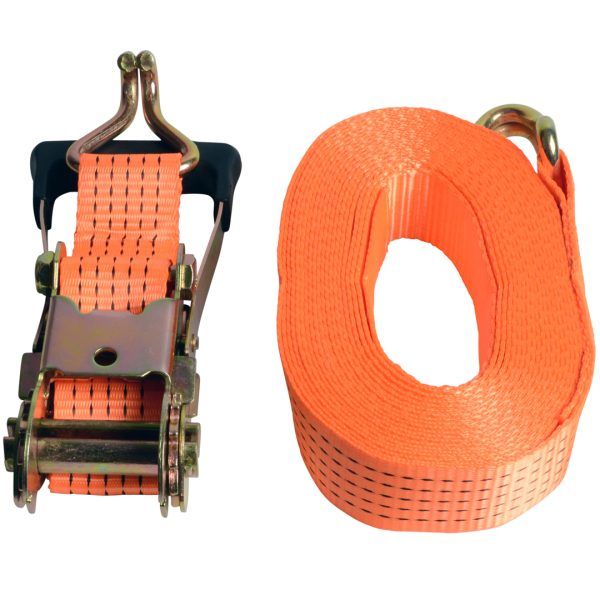 Med skralle og 2 gummibelagte kroker Bredde: 50 mm. Lengde 10 m Bruddstyrke: 2000 kg GS godkjent.