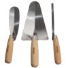 Murerverktøysett 3 deler Med trehåndtak Settet inneholder: Fugeskje 10 mm., universalskje 160 mm. og flyndreskje 180 mm.