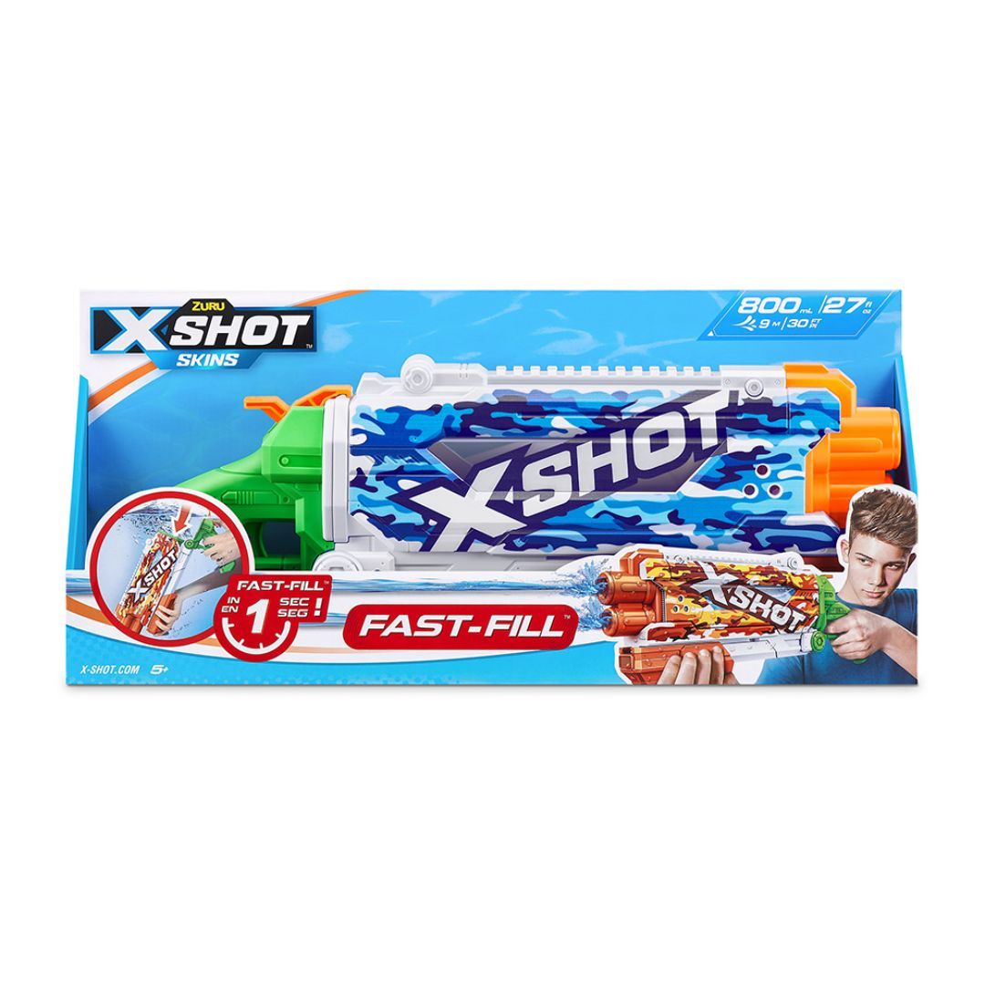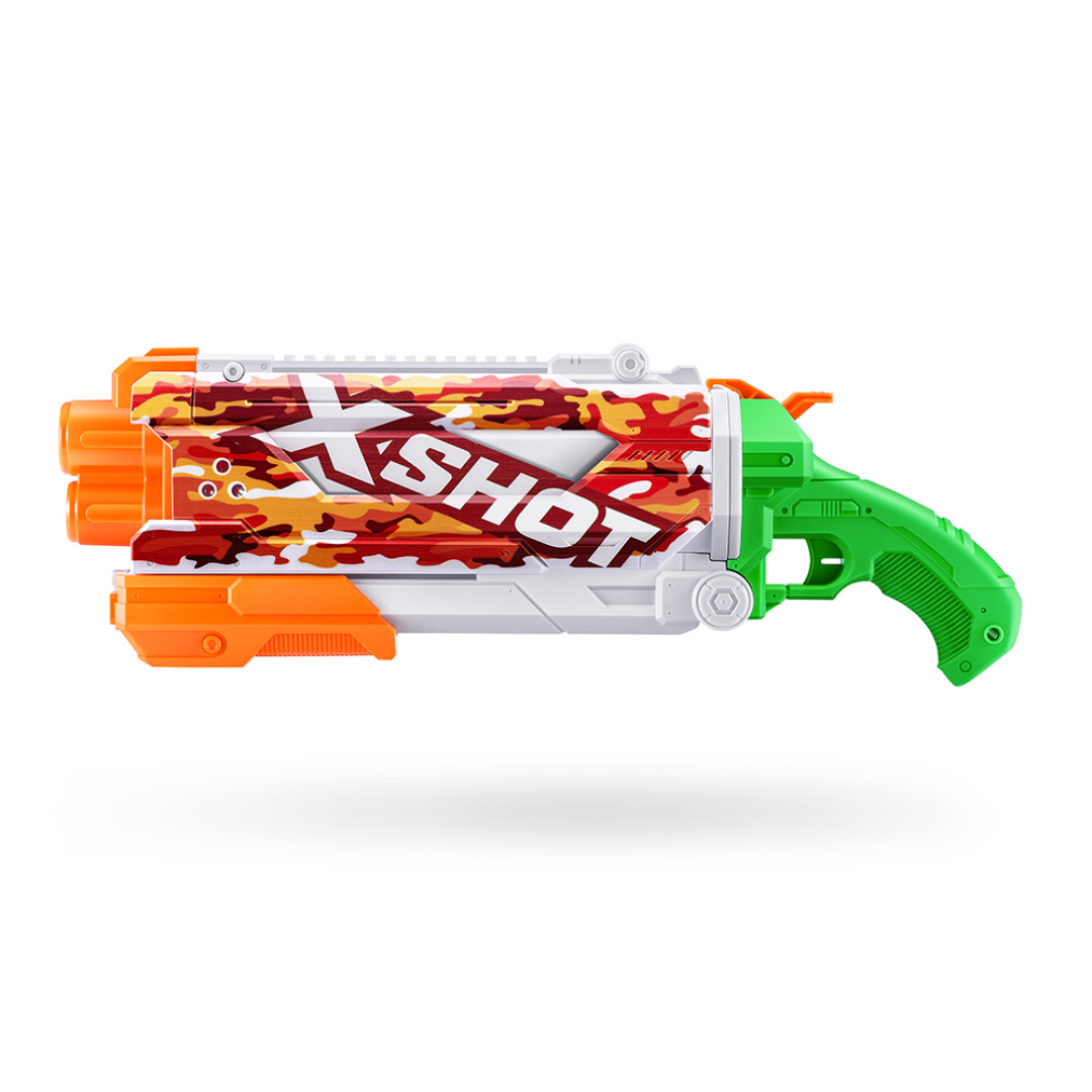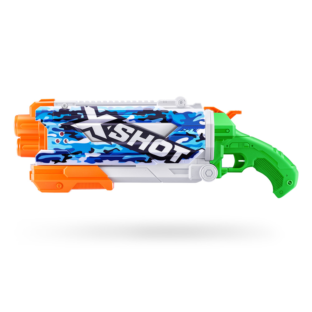 X-Shot Skins Shotgun Fast-Fill er et kraftig vanngevær som kombinerer rask påfylling med høy ytelse. Med Fast-Fill-teknologi kan du fylle tanken på bare ett sekund, slik at du kan holde trykket oppe i vannkampen. Vanngeværet har en stor kapasitet og kan skyte vannstråler over lange avstander, noe som gir deg overtaket i enhver vannkrig. De unike designene lar deg uttrykke din personlige stil mens du deltar i sommerens mest spennende aktiviteter. Anbefalt alder: 5 år og oppover.