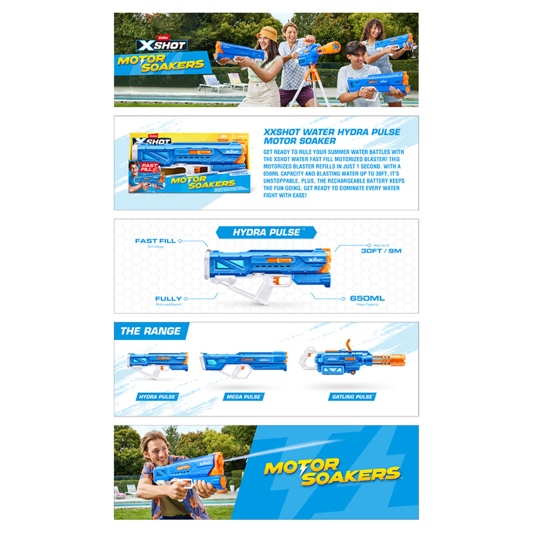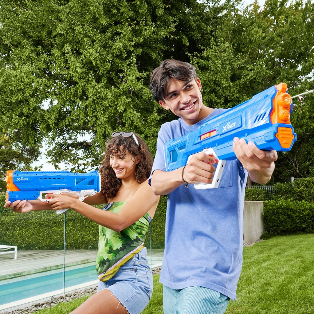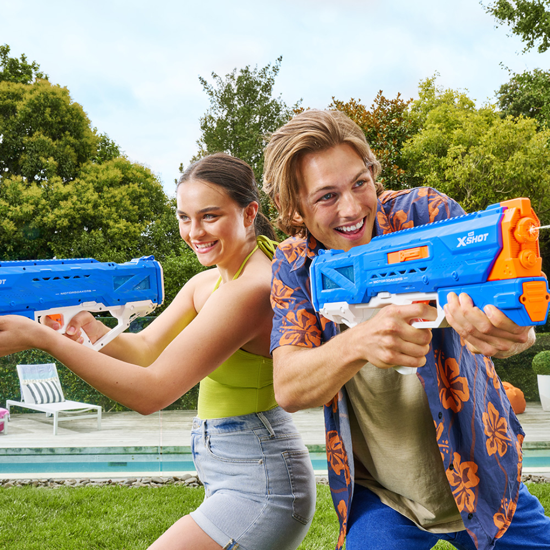 Fast Fill Medium Motor Soaker gir motorisert vannsprut og lynraskt påfyll. Dunk, lukk – og blasteren er klar igjen på ett sekund. En solid allrounder til vannlek.
